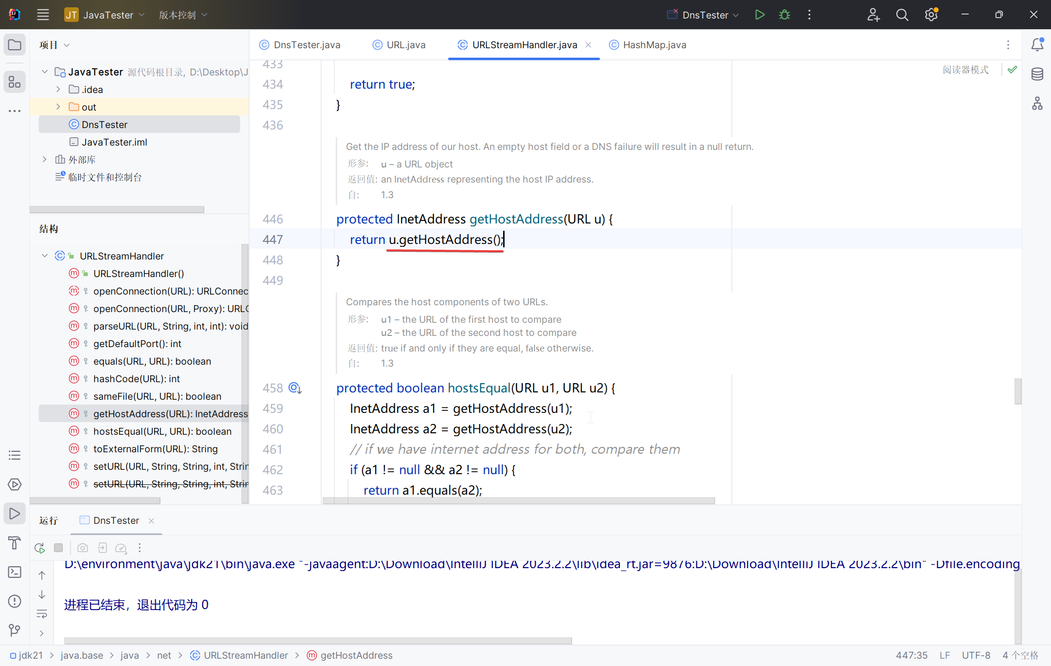 转到DnsTester类,然后ctrl+左键转到URL类中