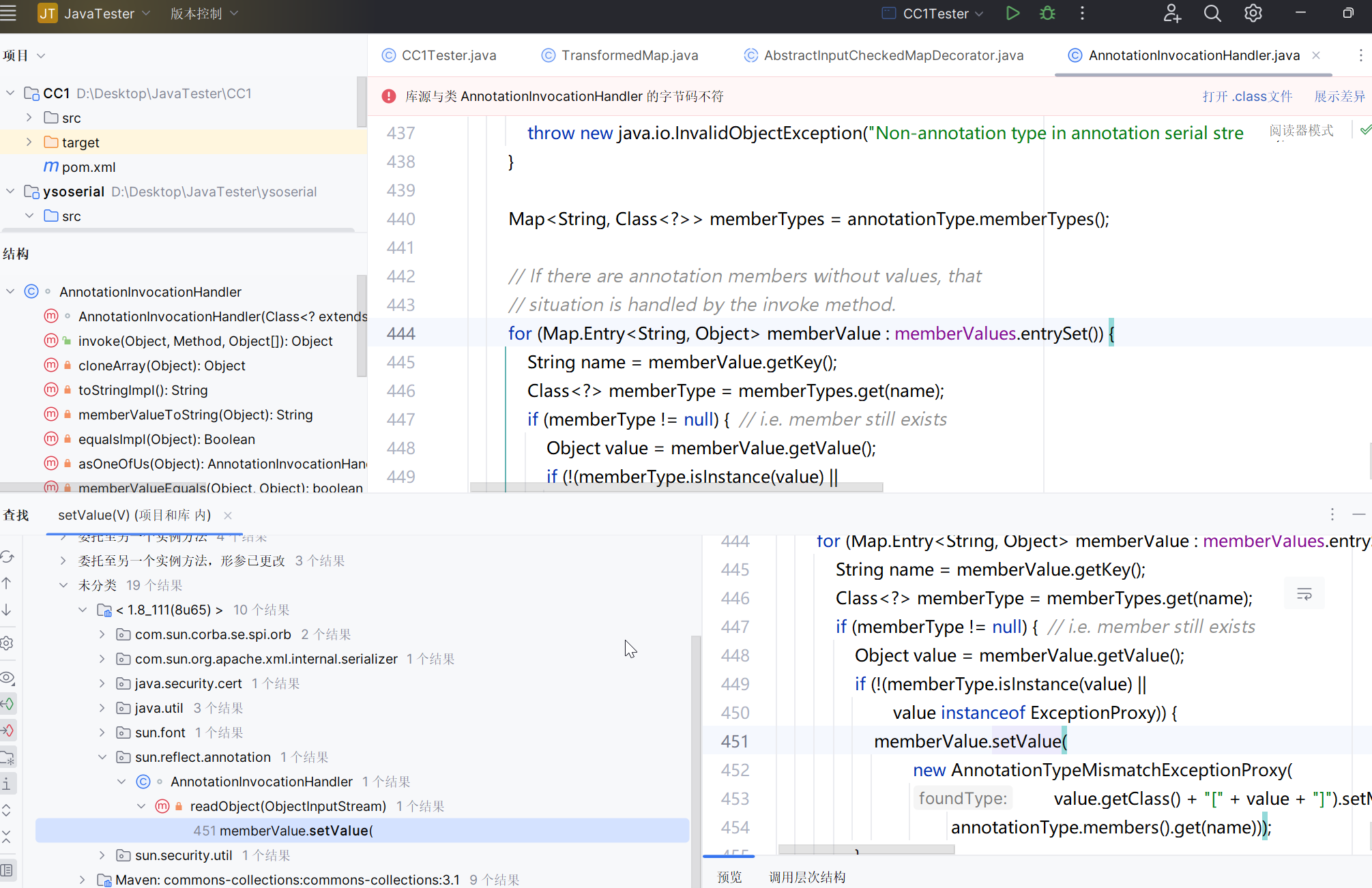 代码2 按照CC1分析中的思路,我们还需要找到一个方法执行transform(),并且能够被反序列化