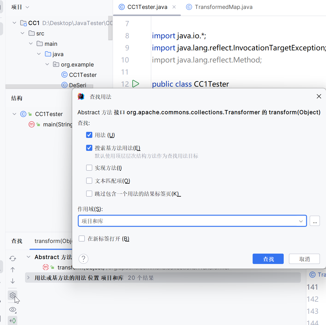 找到直接调用InvokerTransformer类的transform方法的对象或者是方法