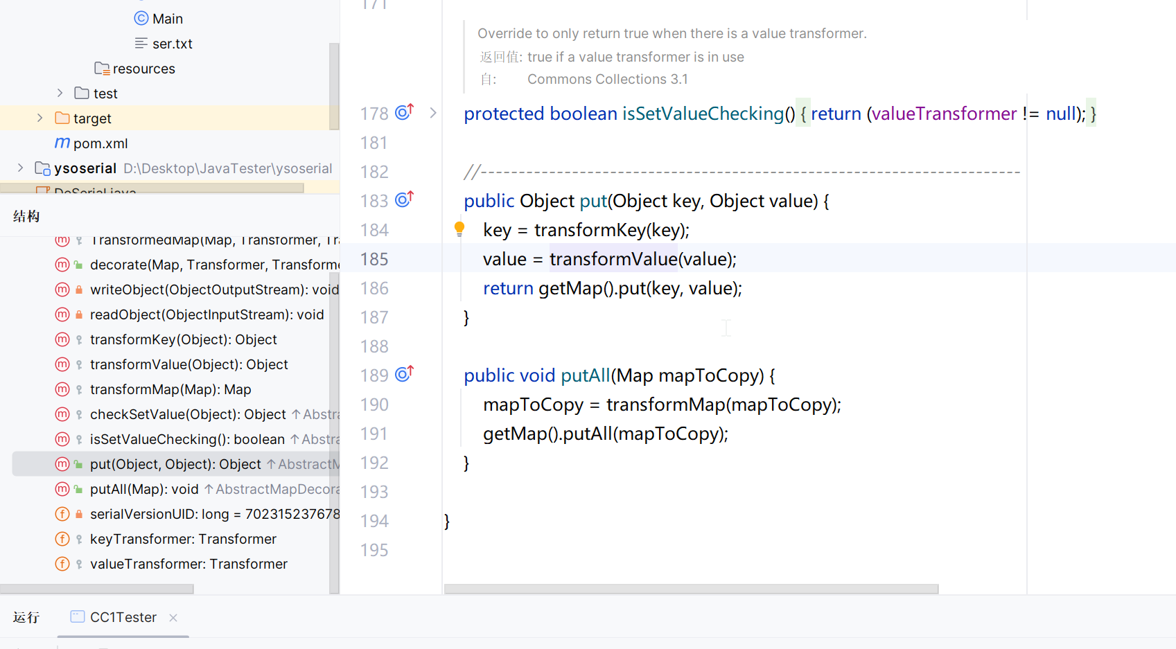setValue()–>>回到了TransformedMap的父类AbstractInputCheckedMapDecorator