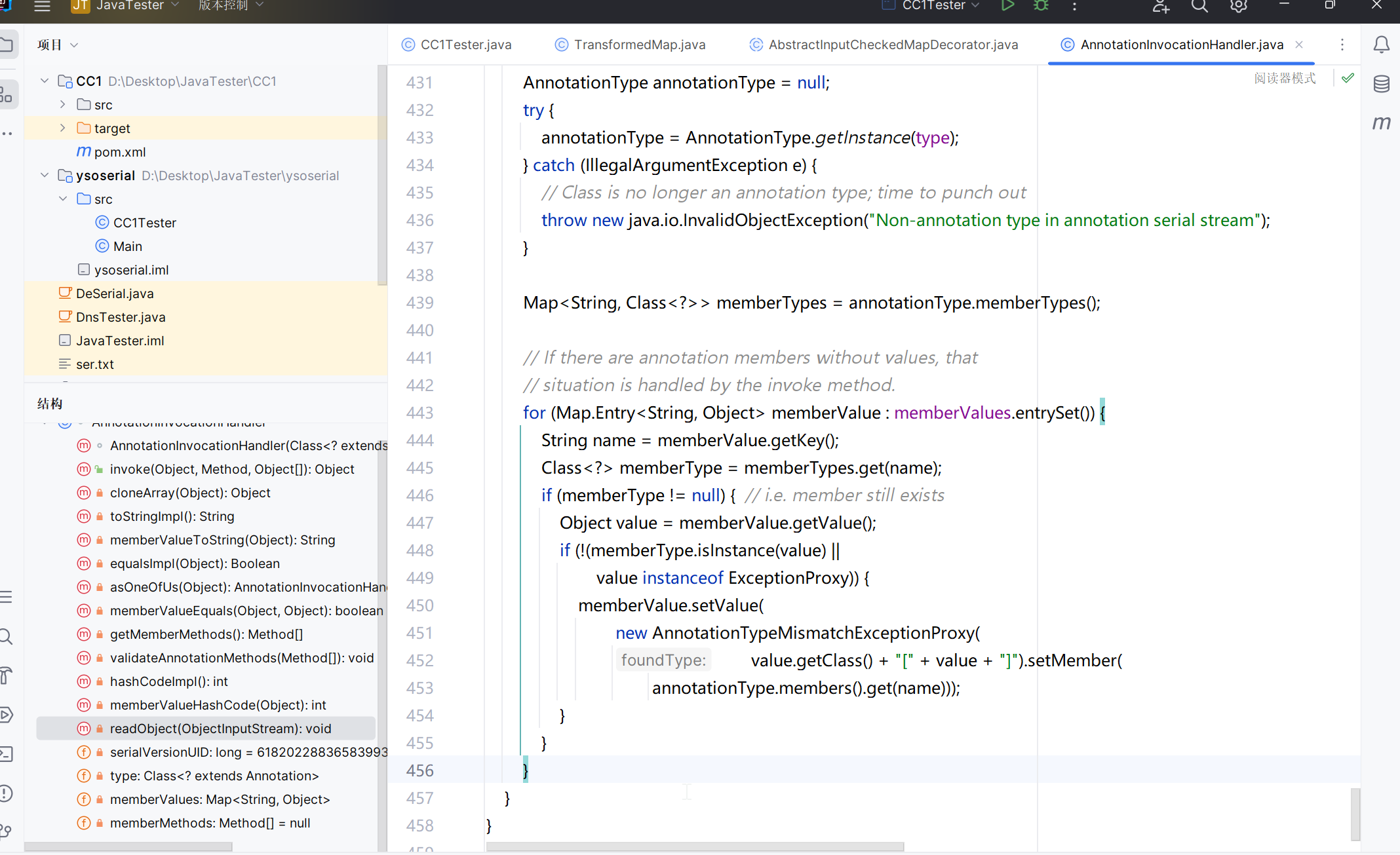 memberValue就是我们传入的值,readObject方法中有一个操作如下