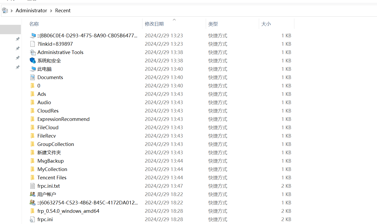 - win+r 输入recent