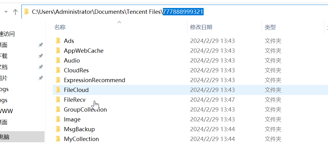可以发现Tencent Files文件夹,里面存在一个数字的文件夹就是QQ号码,可能是通关条件需要的QQ号