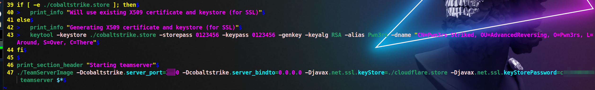 cs启动时会加载一个默认的配置文件,里面配置了证书文件、证书密码、心跳时间等等。配置文件中还可以修改特定的请求和响应让cs的通信在流量中看起来更像合法的请求。